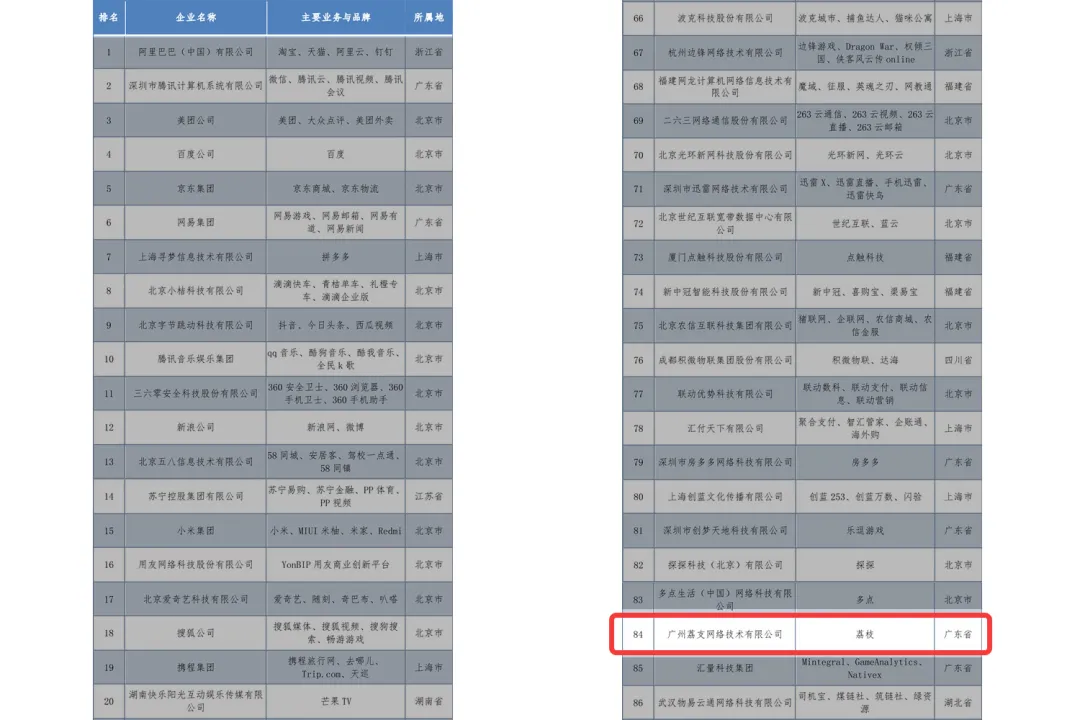 2020年中國互聯網綜合實力前百家企業(yè)(部分)